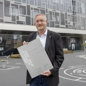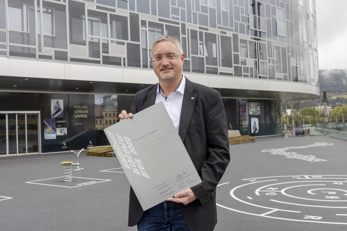 Harald Greger (AFI) vor dem P2 Urbaner Hybrid in Innsbruck