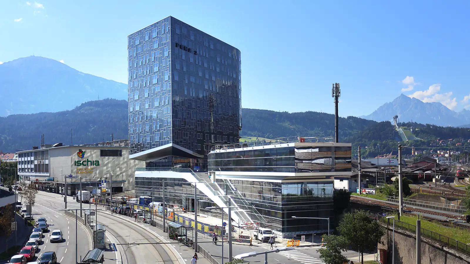 P2 und P1, in unmittelbarer Nähe zueinanderstehend, werten das Viertel rund um den Innsbrucker Hauptbahnhof auf. Als Mittelpunkt des neuen Stadtteils am Innsbrucker Frachtenbahnhof zeigt sich das P2 nicht weniger selbstbewusst.