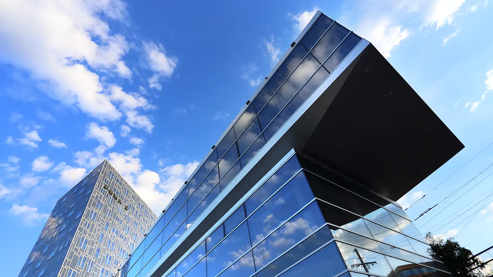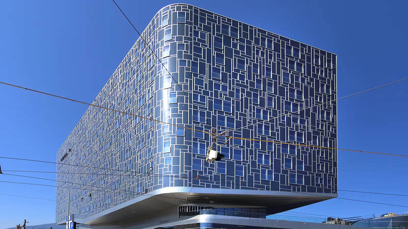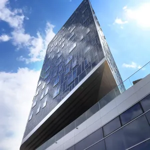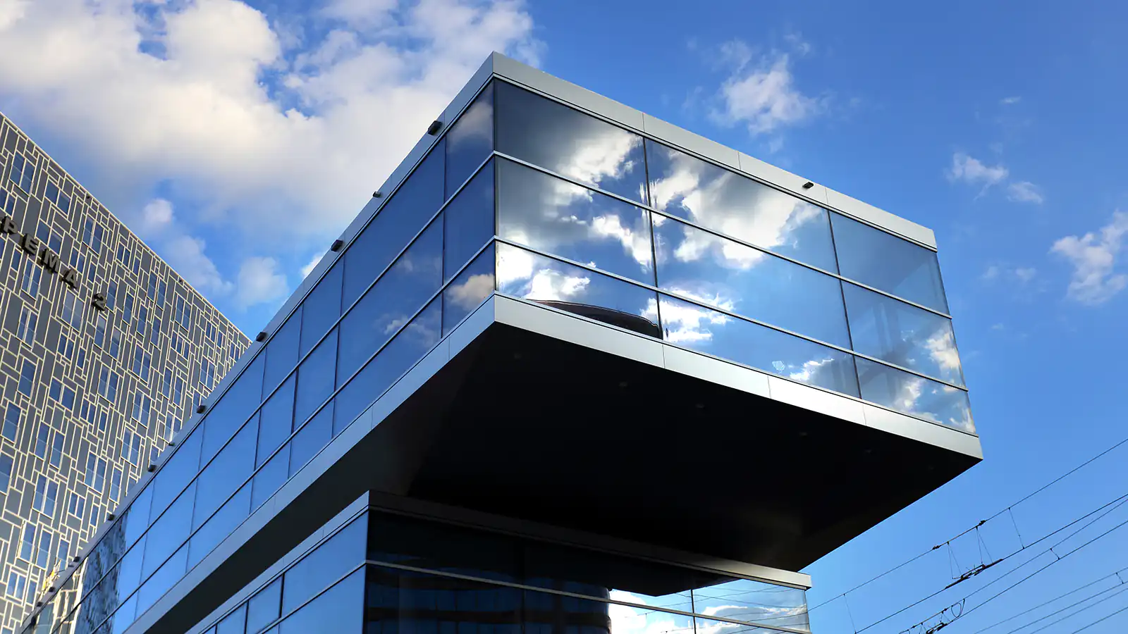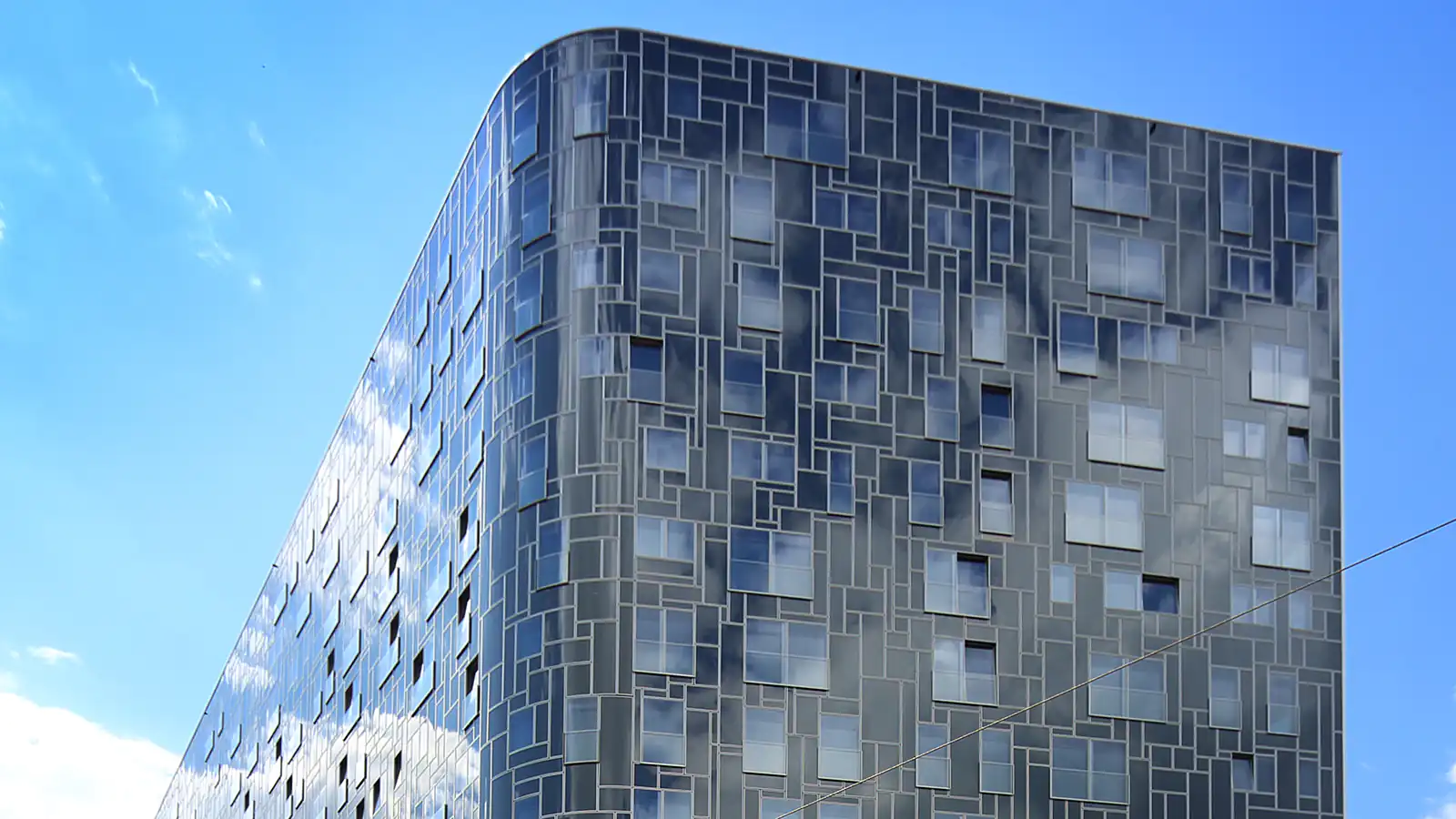 Nur 10 Minuten vom berühmten Wahrzeichen „Goldenes Dachl“ entfernt, fassen sich rund 8.000, in Aluminium gefasste, leicht gewölbte gläserne Elemente zu einem geometrischen Puzzle zusammen und spiegeln einzigartig die Umgebung wider.